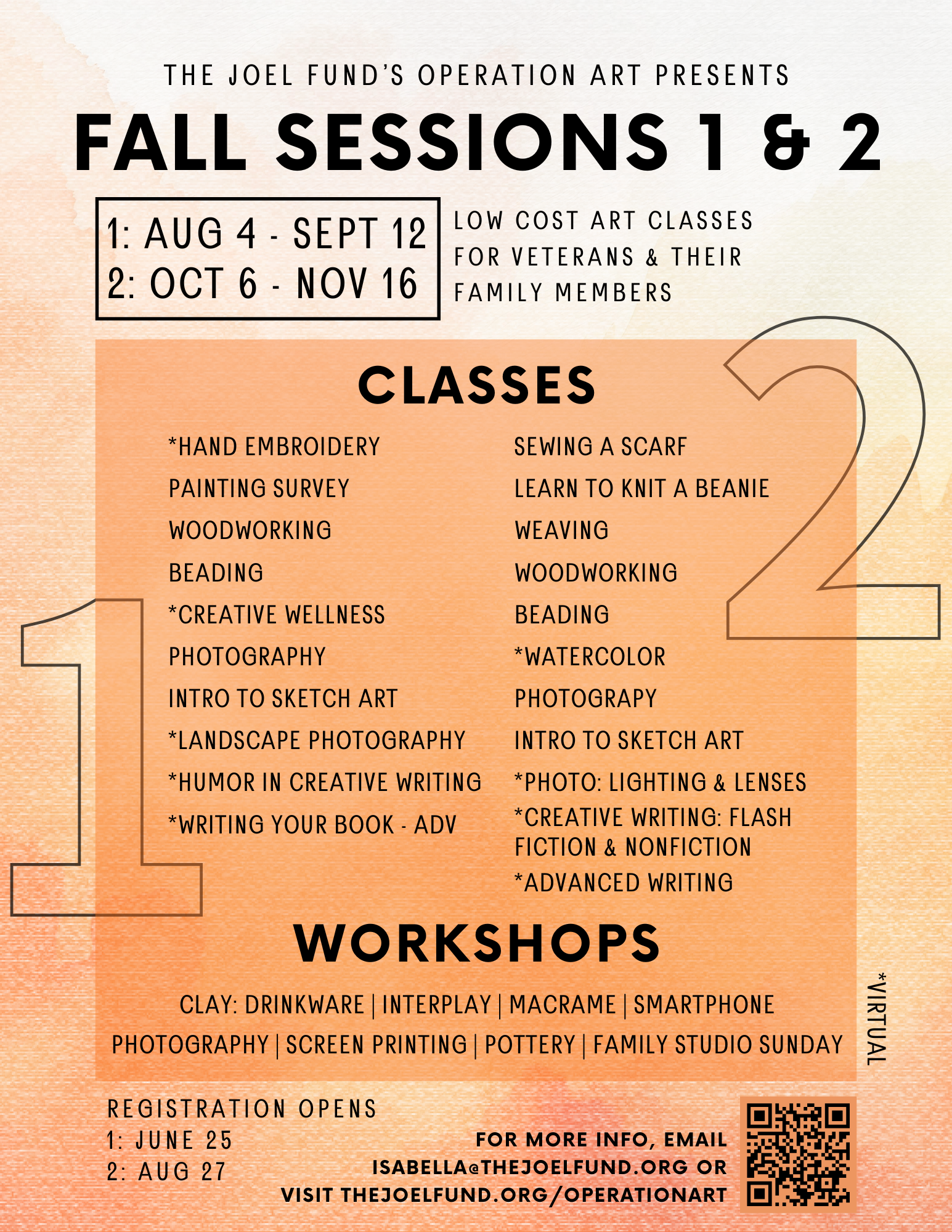 Operation ART classes are for active-duty military, veterans, and their families. The Joel Fund improves the lives of veterans and their families by providing a connection to effective non-traditional services.